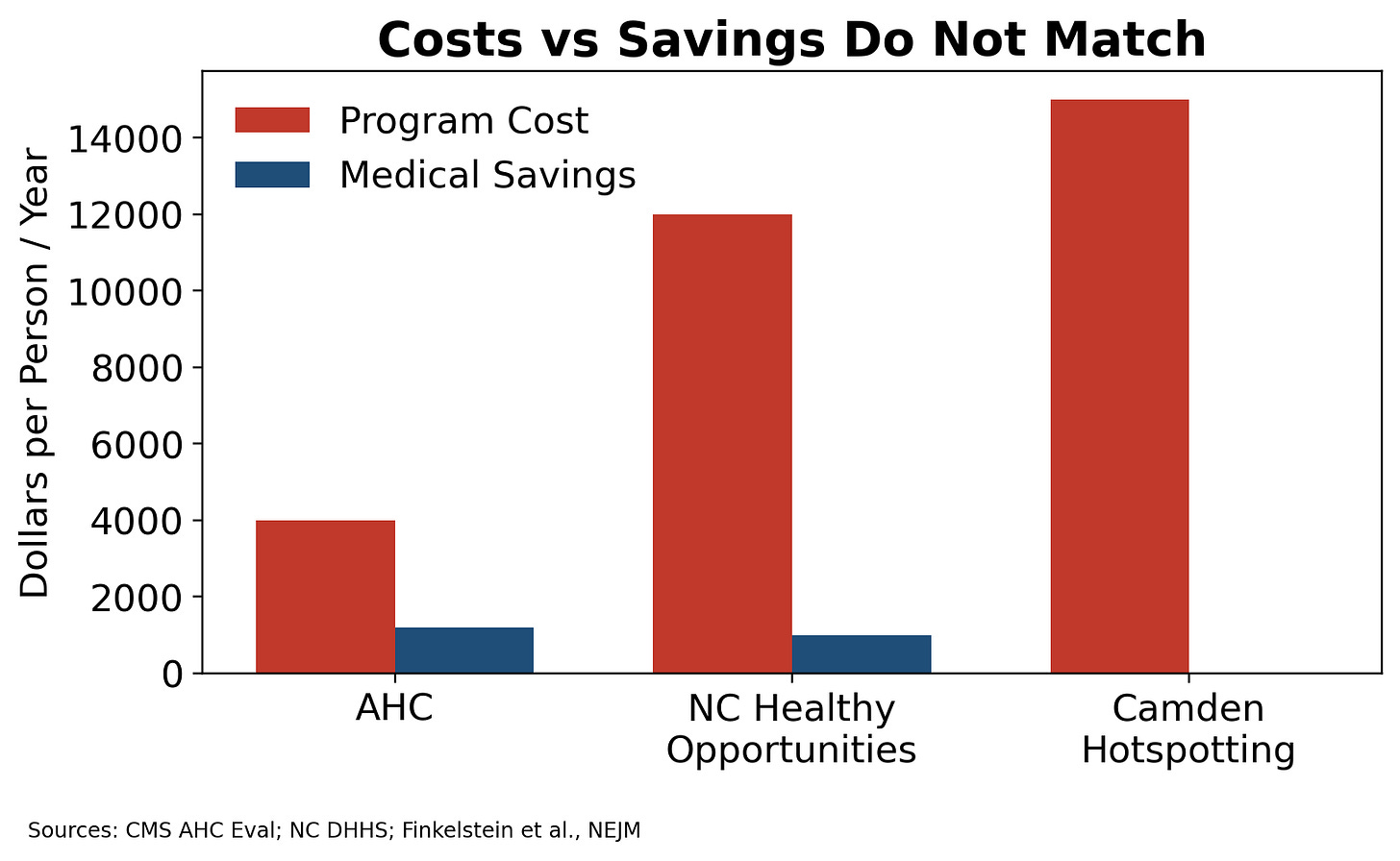 Medicalized social programs do not reach cost neutrality at scale.
